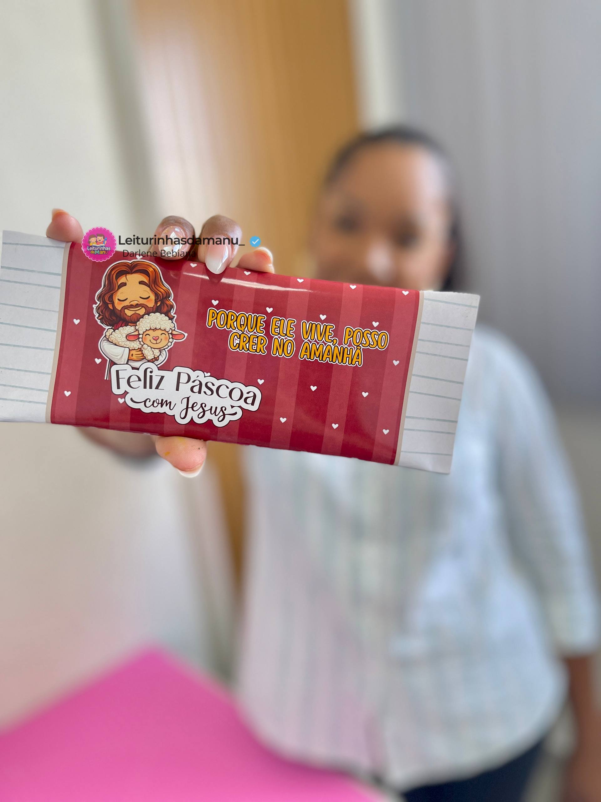 Com esse material, você transforma uma simples barra de chocolate em um presente especial, que transmite o verdadeiro sentido da Páscoa: Jesus vive! ✝️✨